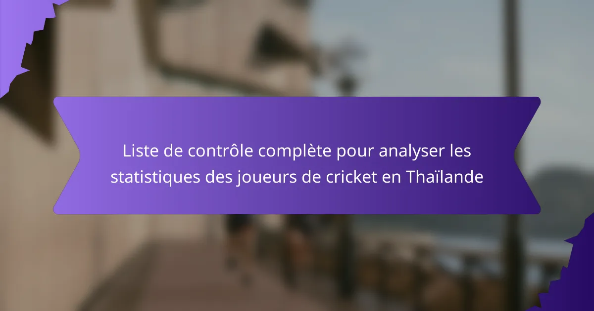 Évaluer la performance des joueurs de cricket thaïlandais implique d’analyser divers indicateurs et facteurs contextuels qui influencent leur jeu. Les aspects clés incluent les données statistiques, les performances historiques et les comparaisons avec les pairs, qui fournissent tous une vue d’ensemble des capacités d’un joueur.