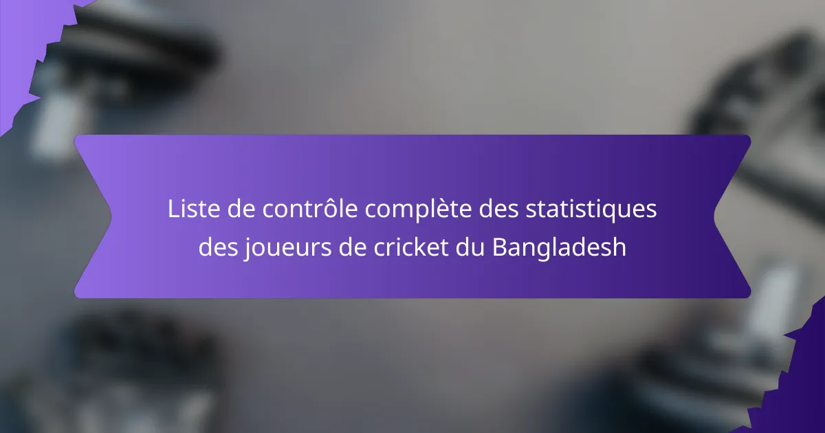 Cette liste de contrôle complète des statistiques des joueurs de cricket du Bangladesh offre un aperçu détaillé des indicateurs de performance clés, y compris les moyennes de batting et de bowling, les statistiques de fielding et les classements des joueurs. En analysant ces statistiques, les fans et les analystes peuvent obtenir des informations précieuses sur les contributions de joueurs individuels comme Shakib Al Hasan et Tamim Iqbal, ainsi que sur la performance globale de l’équipe à travers différents formats.