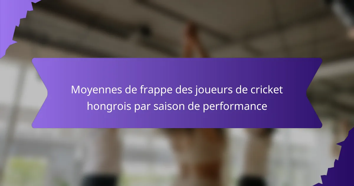 Les moyennes de batting des joueurs de cricket hongrois varient selon les saisons, reflétant les performances individuelles et d’équipe au fil des années. Ces moyennes servent d’indicateur clé de la constance et de l’efficacité d’un joueur lors des matchs.