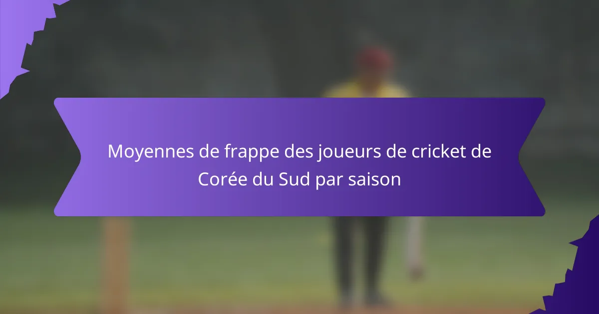 Les moyennes au bâton des joueurs de cricket sud-coréens sont influencées par plusieurs facteurs clés, notamment l’expérience des joueurs, les conditions du terrain et la force de l’opposition. Comprendre ces éléments peut aider à analyser les tendances de performance au fil des différentes saisons.