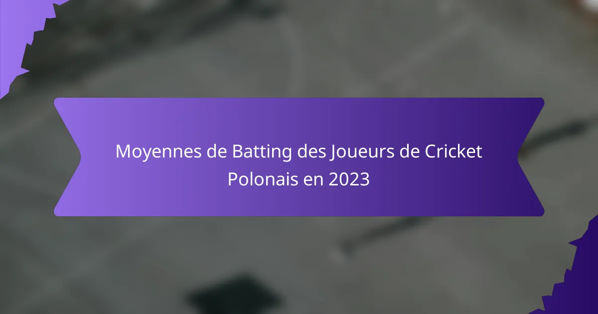 En 2023, plusieurs joueurs de cricket polonais ont atteint des moyennes au bâton impressionnantes, mettant en avant leurs compétences sur le terrain. Les meilleurs performeurs ont démontré constance et technique, contribuant de manière significative aux succès de leurs équipes tout au long de la saison.
